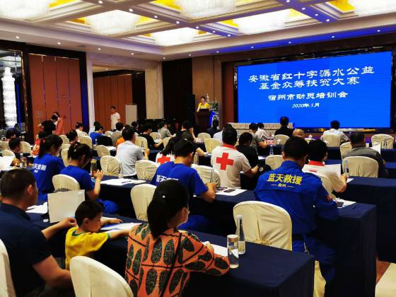 為發揚人道主義精神,助力脫貧攻堅,促進慈善公益事業發展,由安徽省紅十字會主辦、安徽省社會組織聯合會、安徽省紅十字基金會承辦、安徽文旅集團協辦安徽省紅十字潺水公益基金眾籌扶貧大賽于5月9日正式啟動。 5月22日,宿州市紅十字會動員培訓會在豐大國際酒店舉行,安徽省紅十字基金會負責人沈莉、市紅十字會常務副會長楊玉潔、安徽花亭文化園有限責任公司負責人及市社會組織聯合會、市工商聯、市總工會、團市委、市婦聯、市殘聯的分管領導,各縣區紅十字會、各行業協會和公益合作單位相關負責人等共170余人參加。市紅十字會黨組成員、專職副會長卓海波主持會議 。